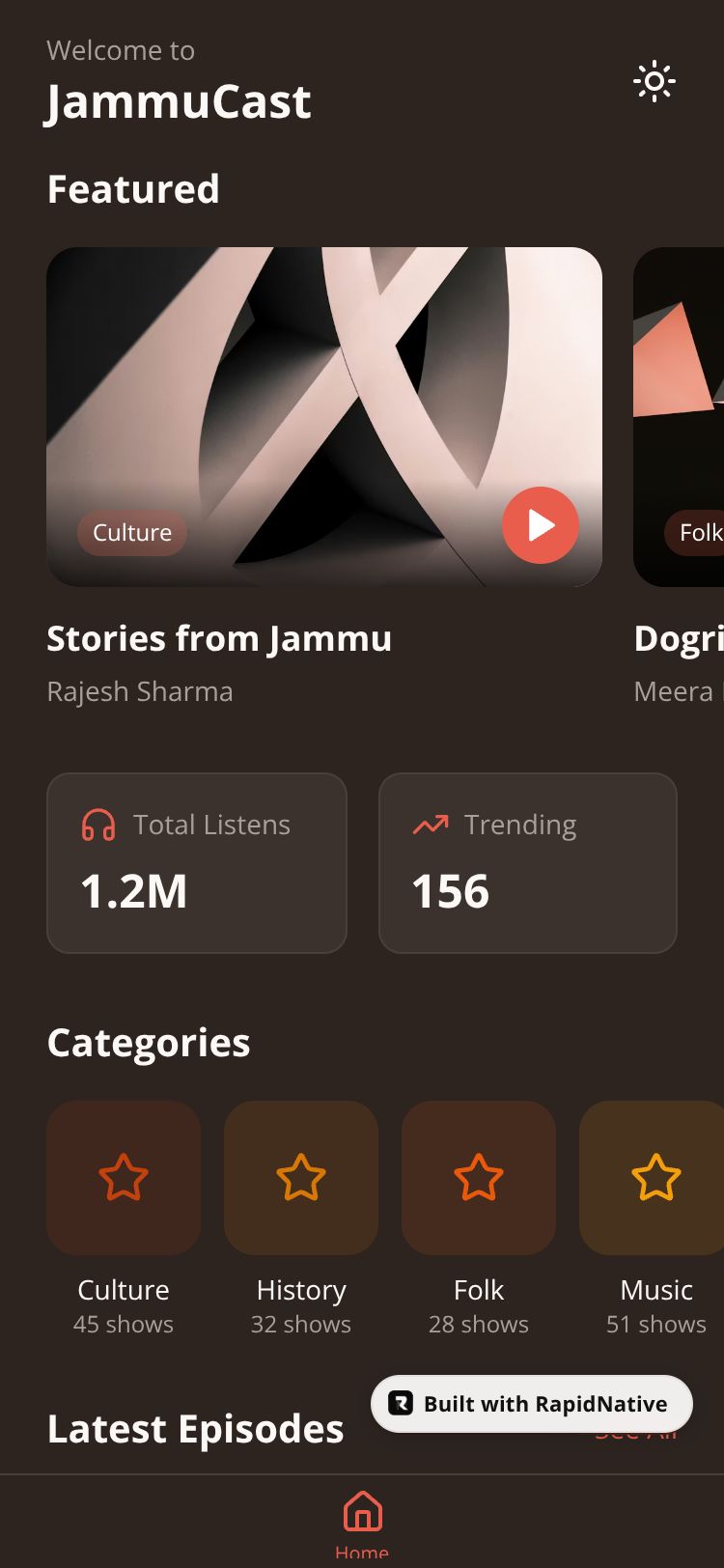Browse this public project and clone it to start building your own React Native JammuCast app.