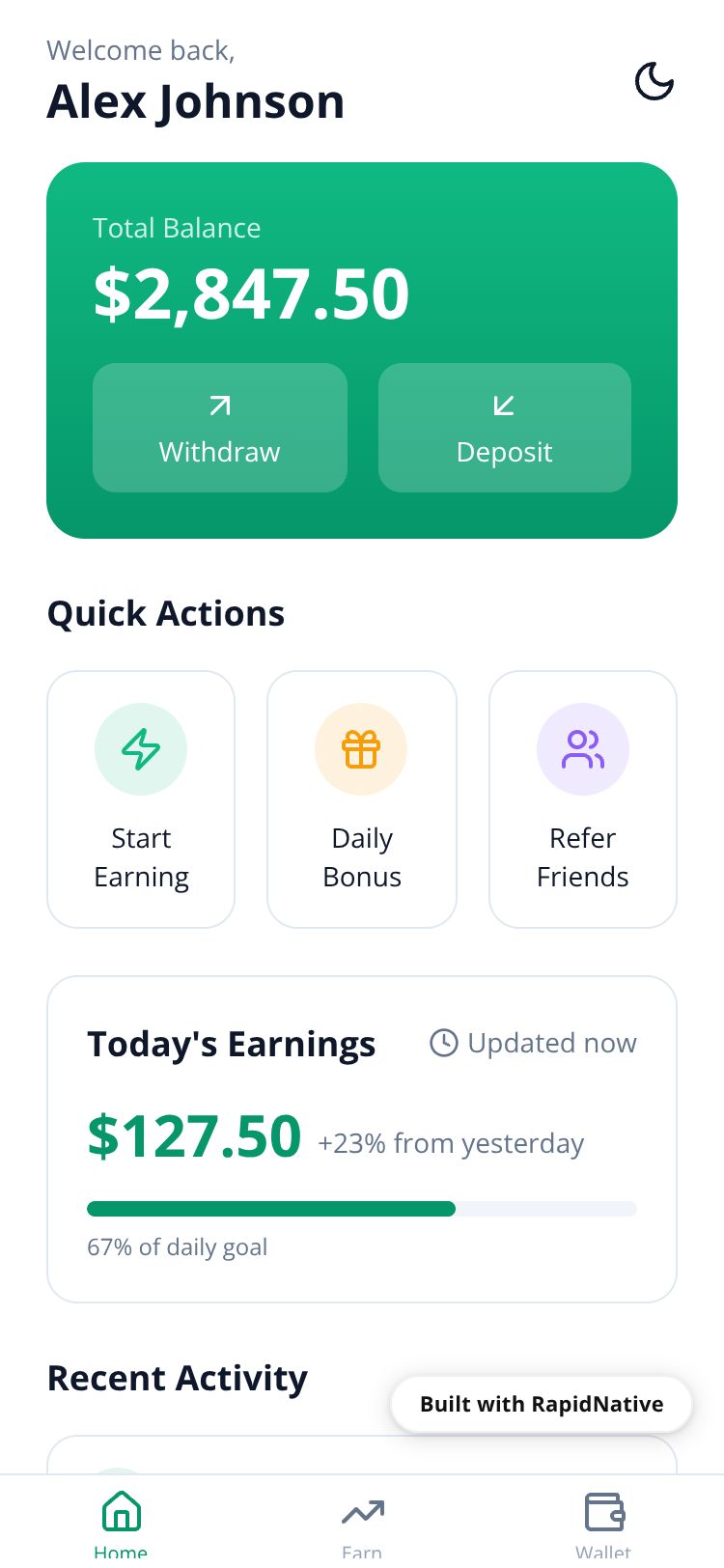 Browse this public project and clone it to start building your own React Native WealthFlow app.