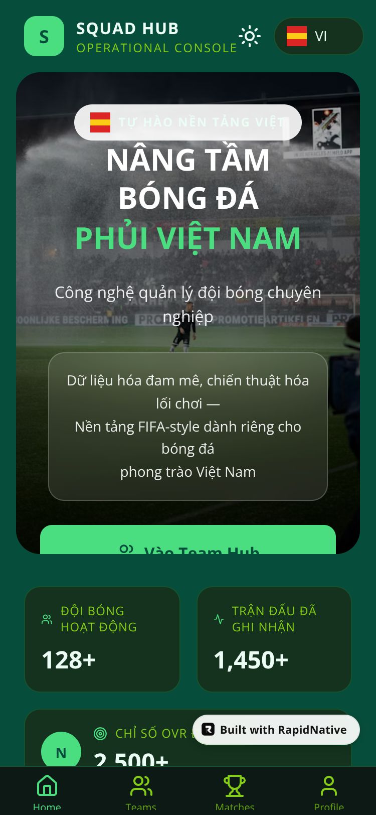 A FIFA-style football management platform built exclusively for Vietnamese amateur football teams. Features data-driven player scouting, tactical analysis, and professional team management tools.