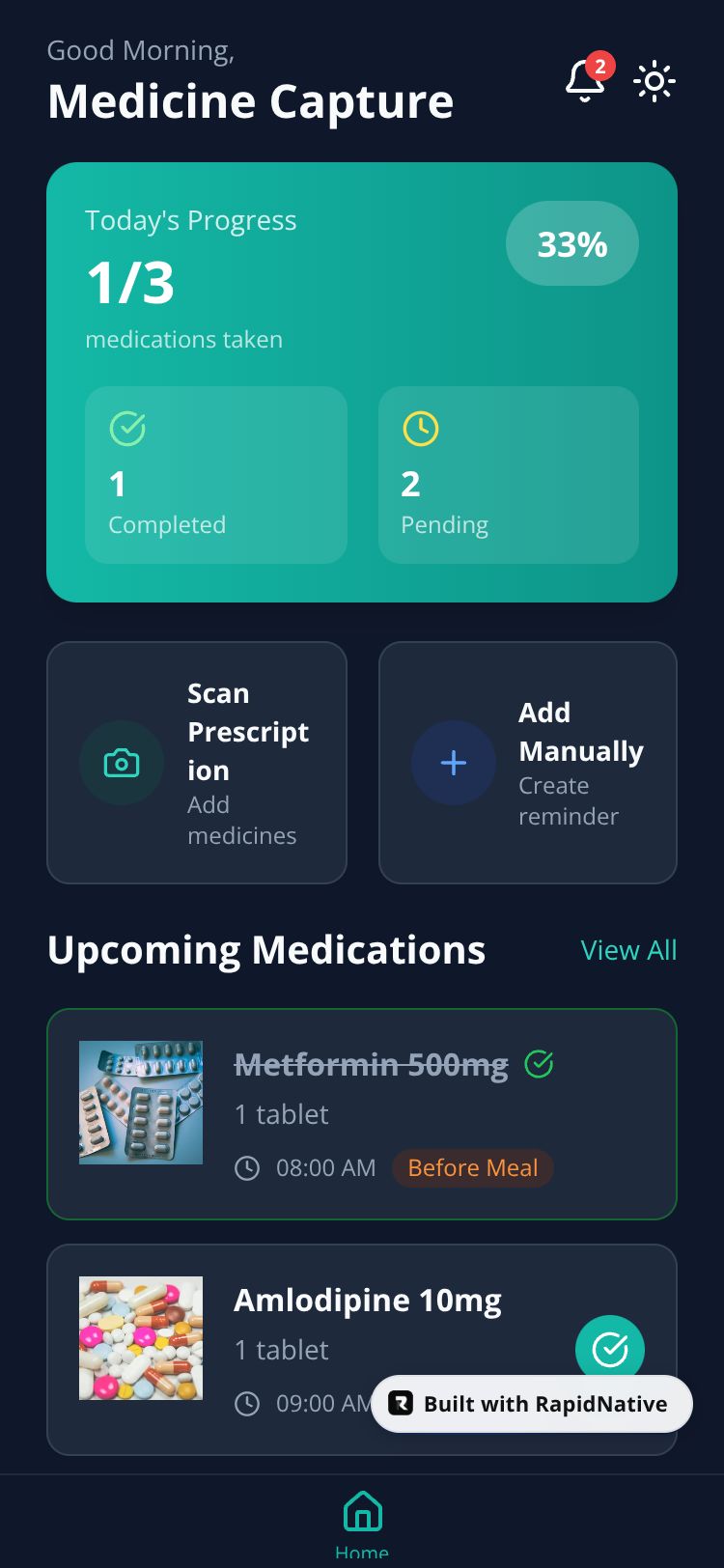 An intelligent healthcare reminder app that simplifies medication adherence through prescription image recognition, automated scheduling, voice assistance, and multilingual support.