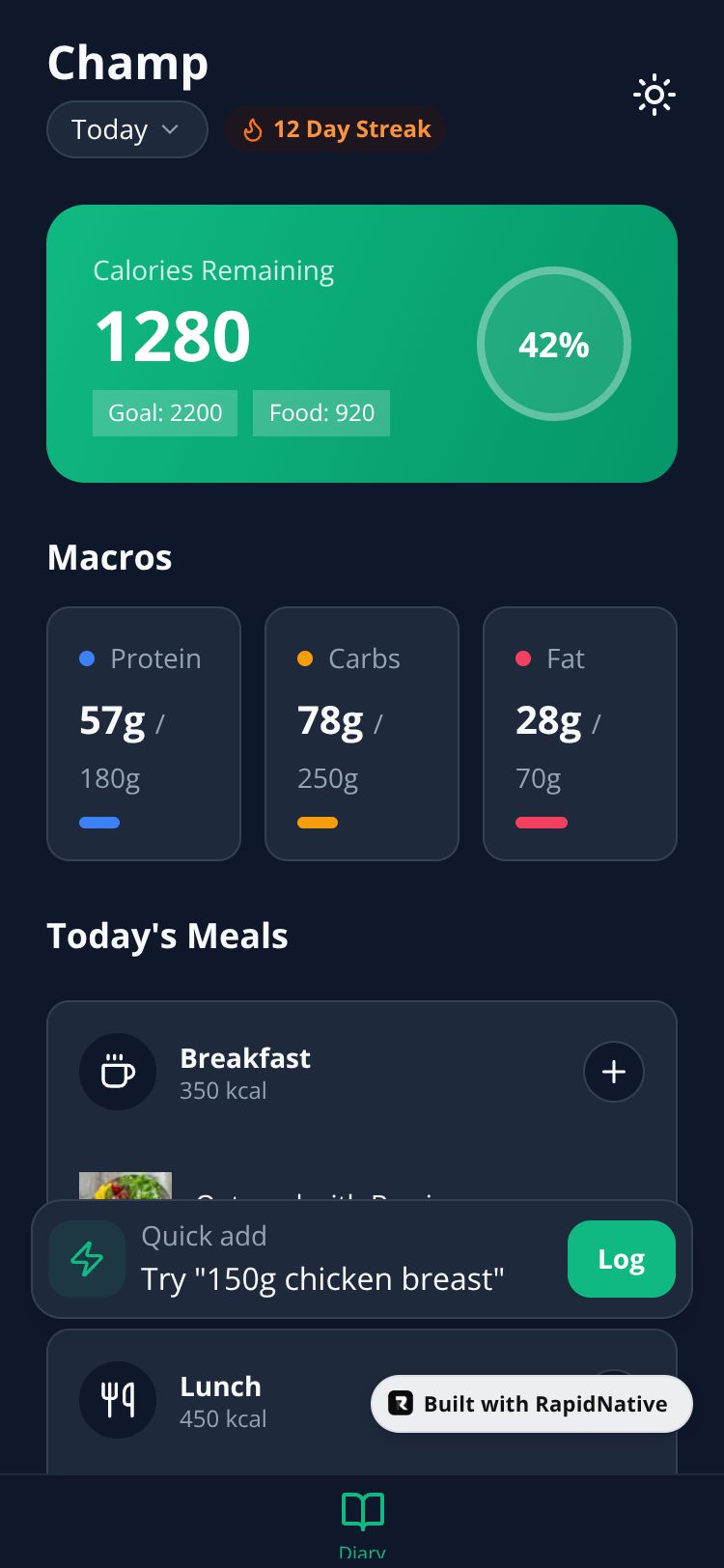 A fast, offline-first nutrition tracker with smart food logging, macro tracking, and daily progress visualization.