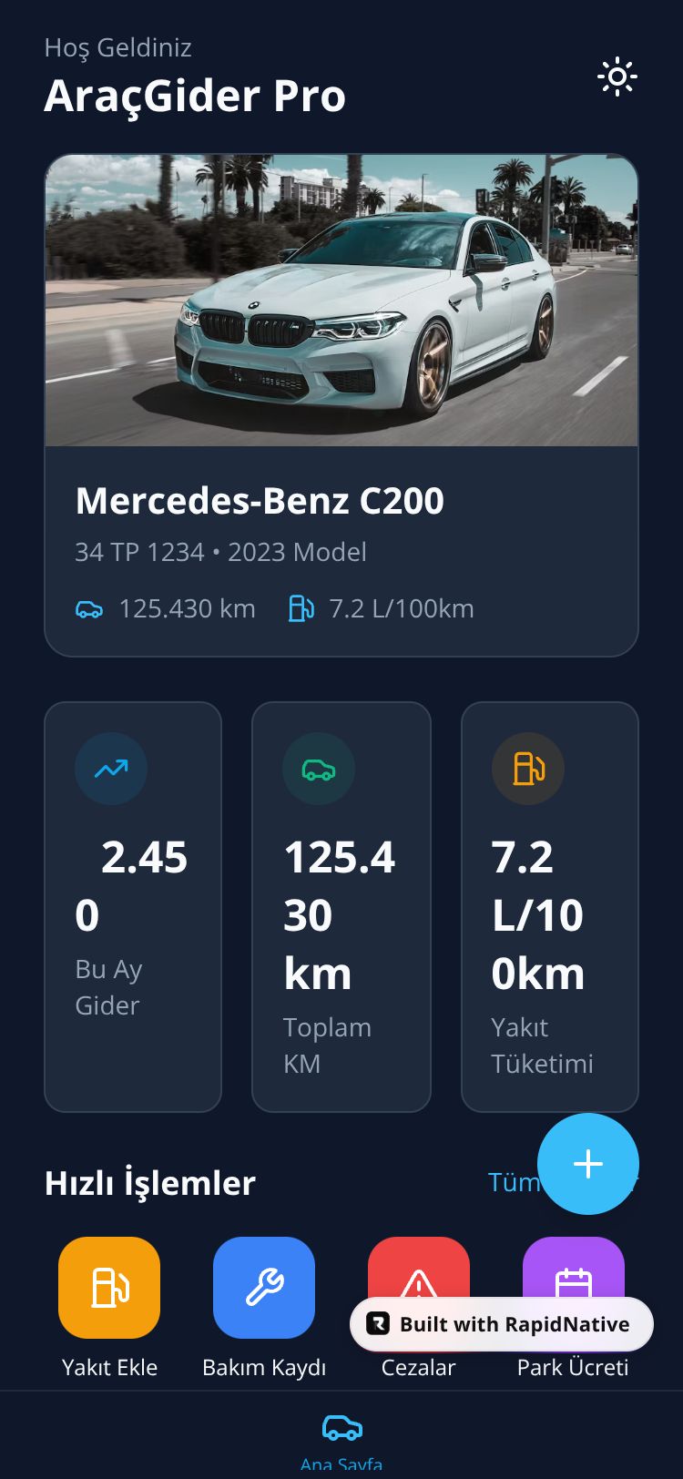 Browse this public project and clone it to start building your own React Native AraçGider Pro app.