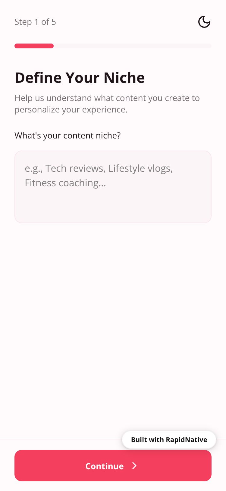 Streamline your creator journey with guided onboarding for niche, audience, and platform setup.