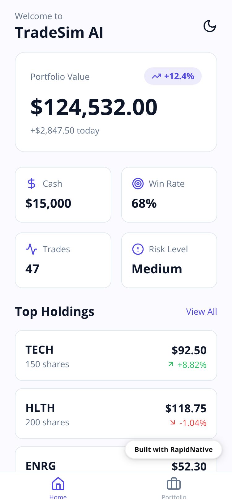Browse this public project and clone it to start building your own React Native TradeSim AI app.
