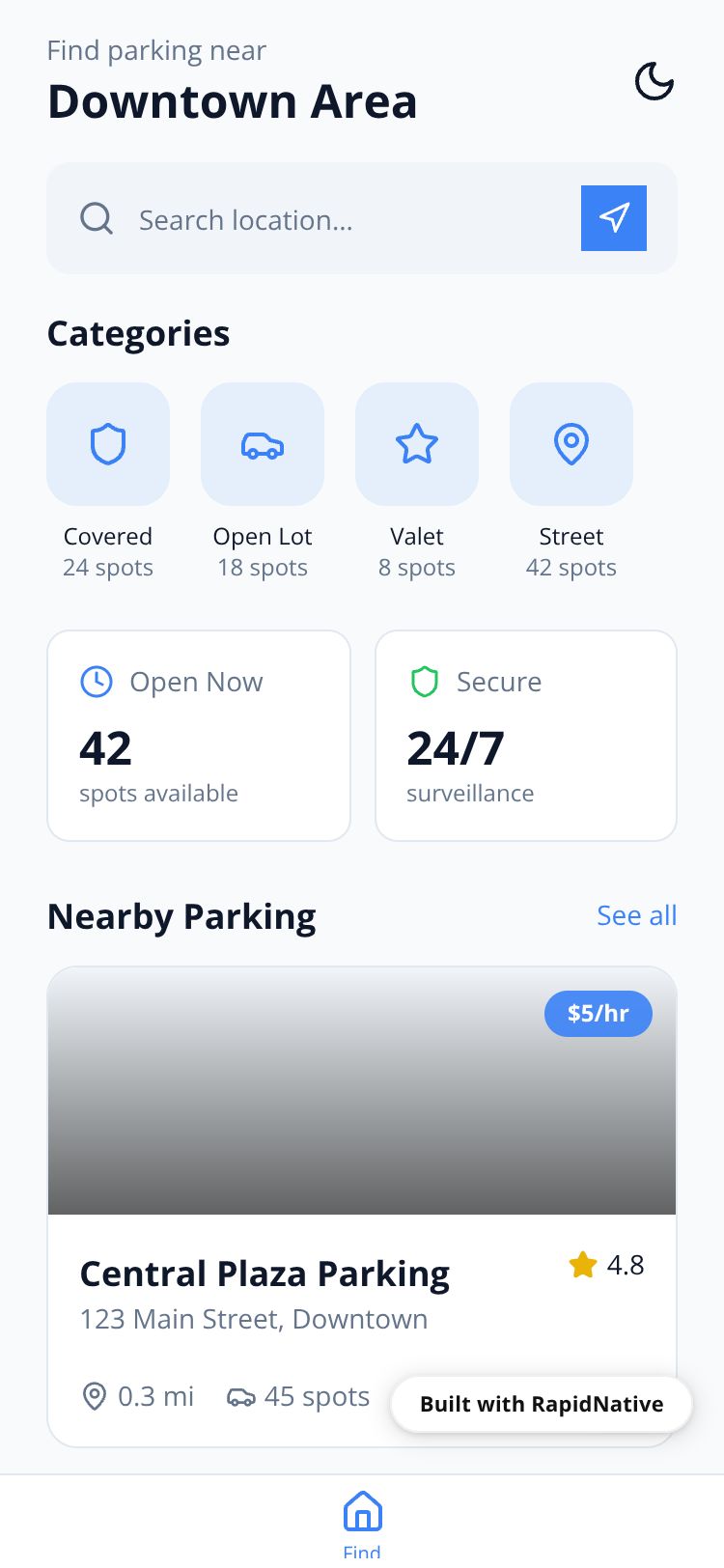 Browse this public project and clone it to start building your own React Native ParkPro app.