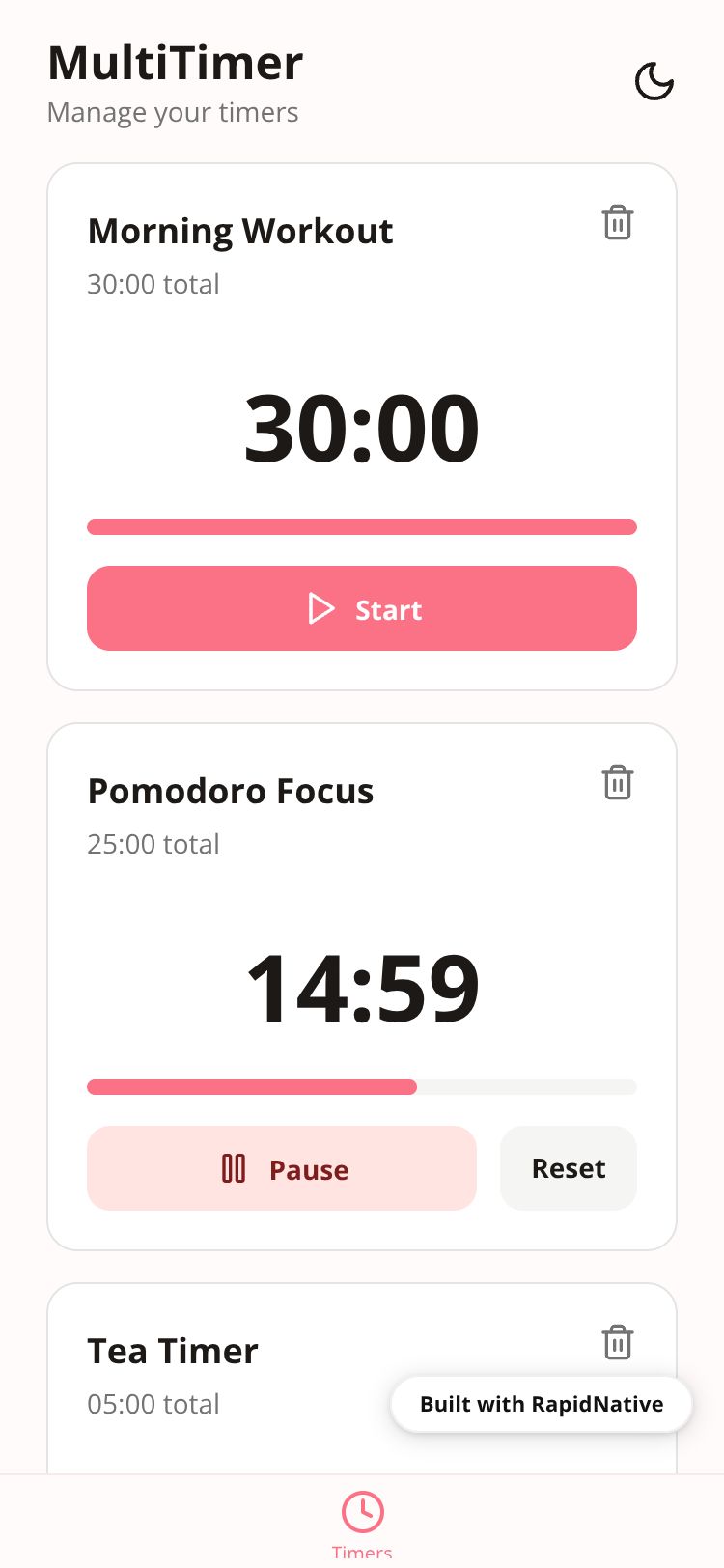 Browse this public project and clone it to start building your own React Native MultiTimer Pro app.