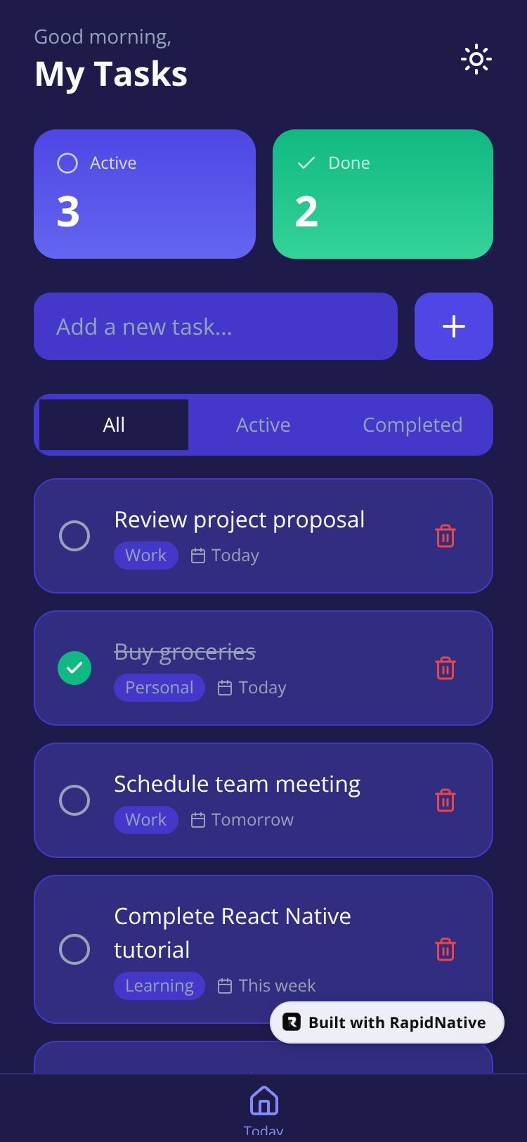 Browse this public project and clone it to start building your own React Native TaskMaster Pro app.