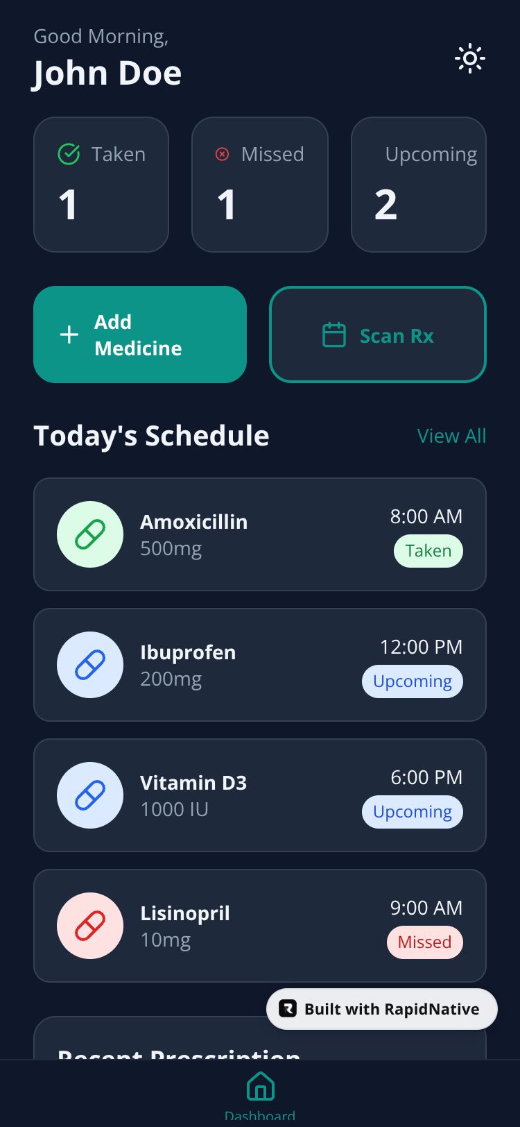 Smart prescription management app with OCR scanning, automatic scheduling, and intelligent medication reminders to help you never miss a dose.