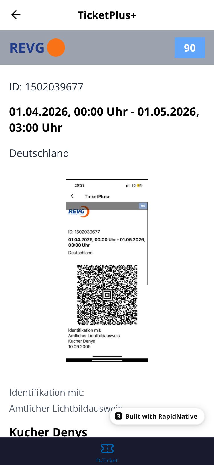 React Native TicketPlus+ App Preview