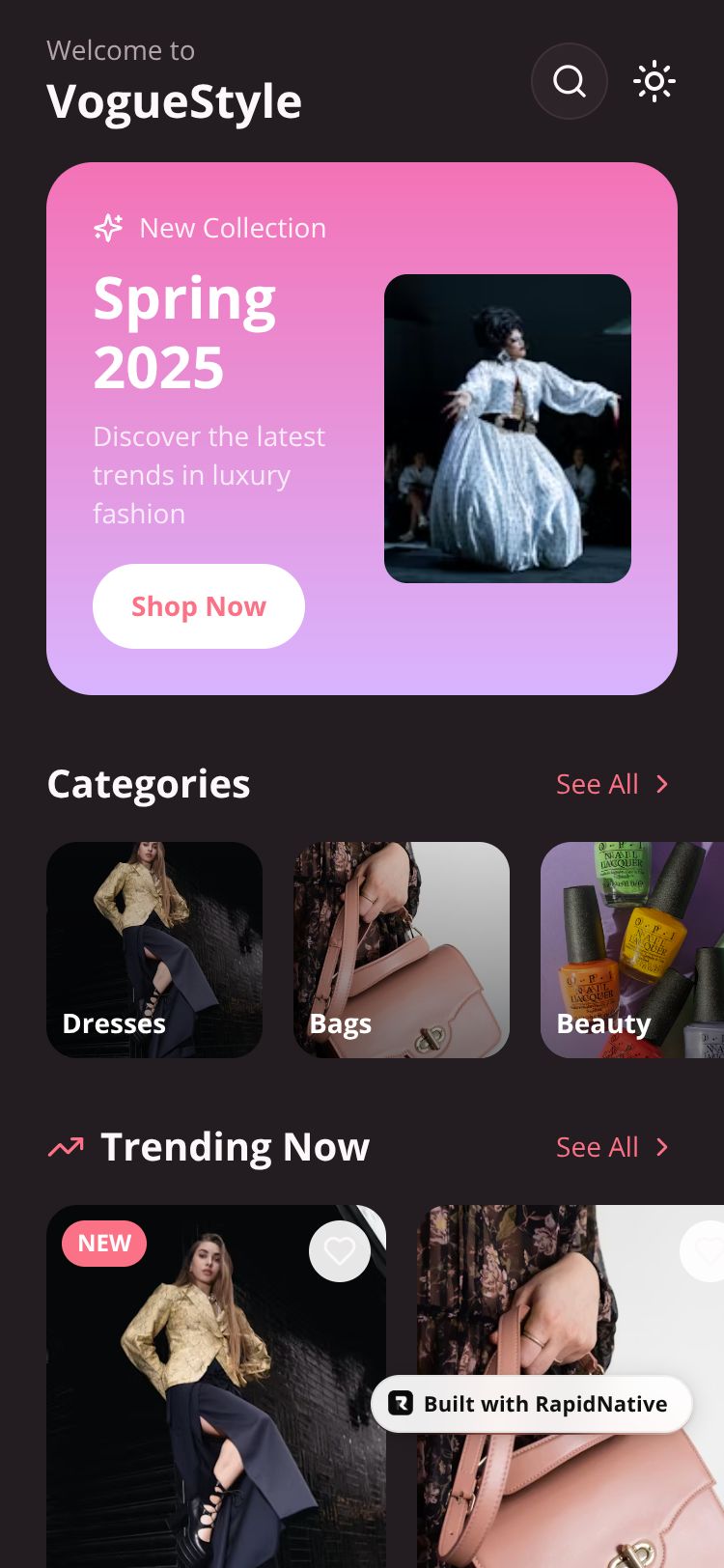 A modern fashion shopping app featuring elegant product displays, size selection, and seamless cart experience.