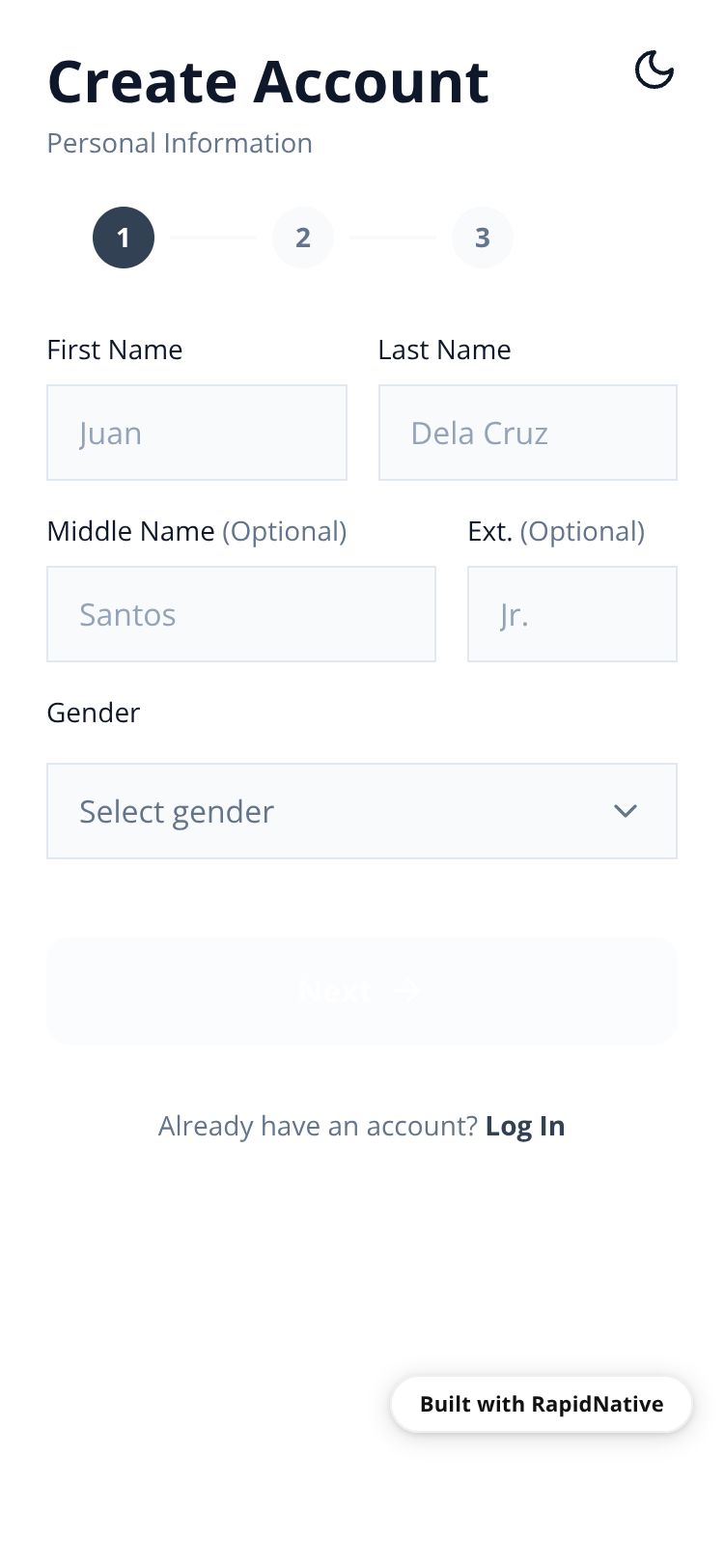 A clean, minimalist sign-up interface designed for student registration with comprehensive form fields.