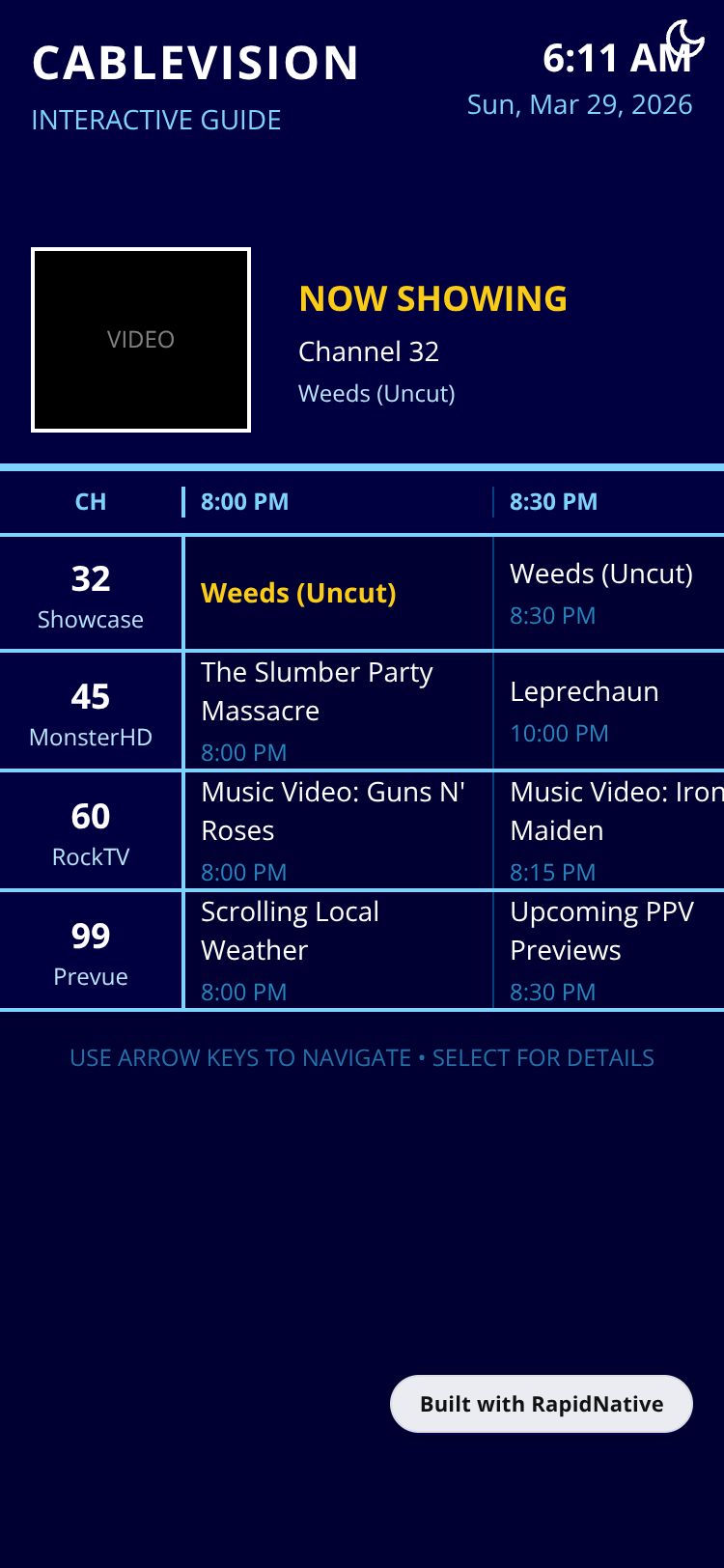 Browse this public project and clone it to start building your own React Native RetroTV Guide app.