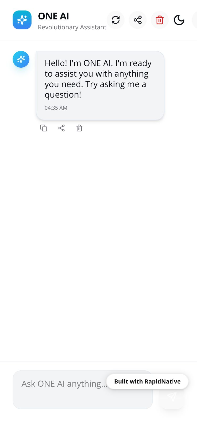 Browse this public project and clone it to start building your own React Native ONE AI app.