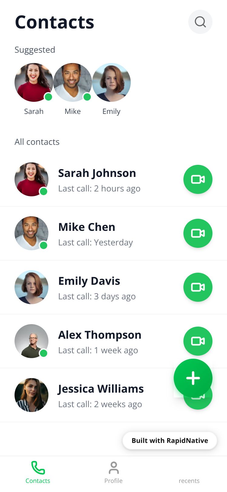 A simple, high-quality video calling app with a clean interface, contact list, and recent calls. Features the iconic teal design.