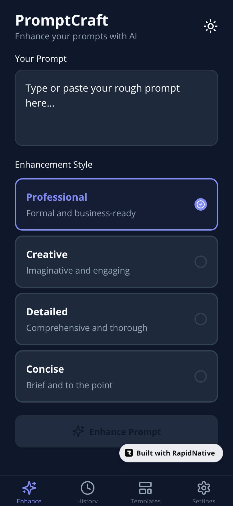 Browse this public project and clone it to start building your own React Native PromptCraft AI app.
