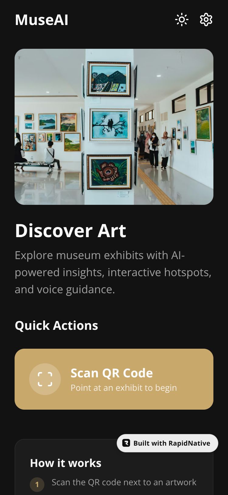 Browse this public project and clone it to start building your own React Native ArtGuide AI app.