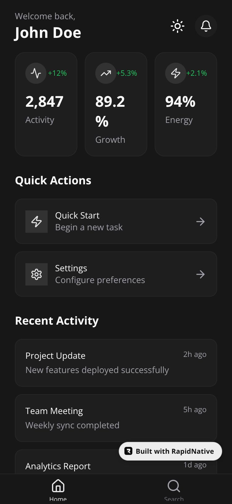A modern mobile app template with navigation, theme support, and polished UI components.