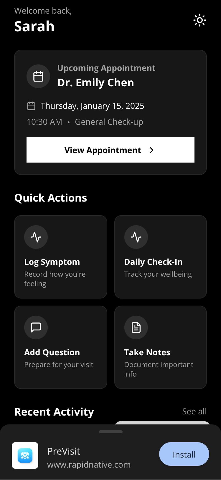 Browse this public project and clone it to start building your own React Native PreVisit app.
