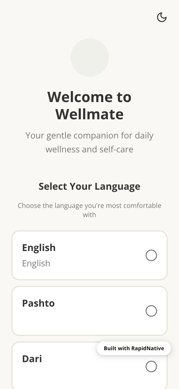 Browse this public project and clone it to start building your own React Native Wellmate app.