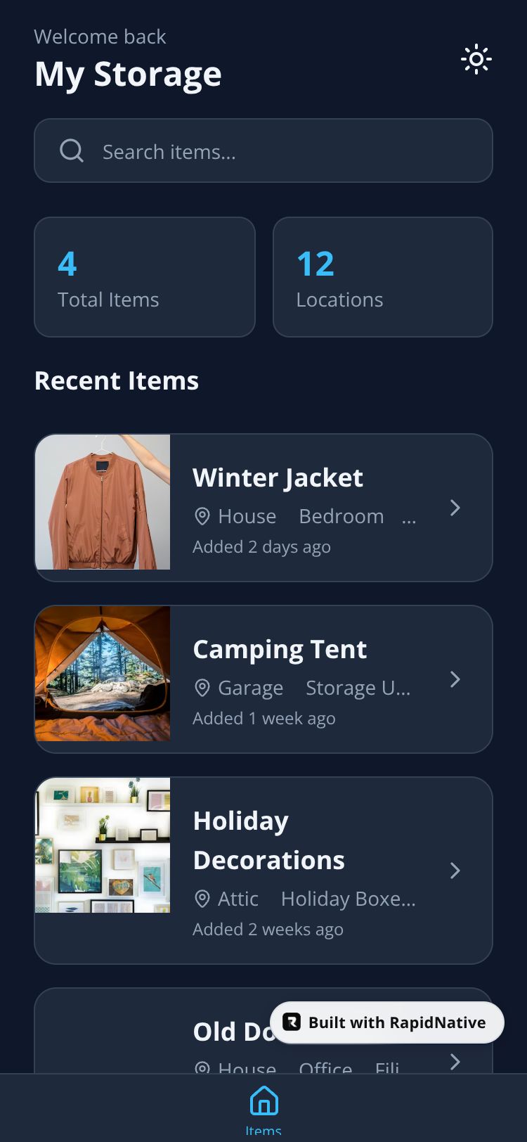 Track and organize your stored items with photos and hierarchical location management. Never lose track of your belongings again.