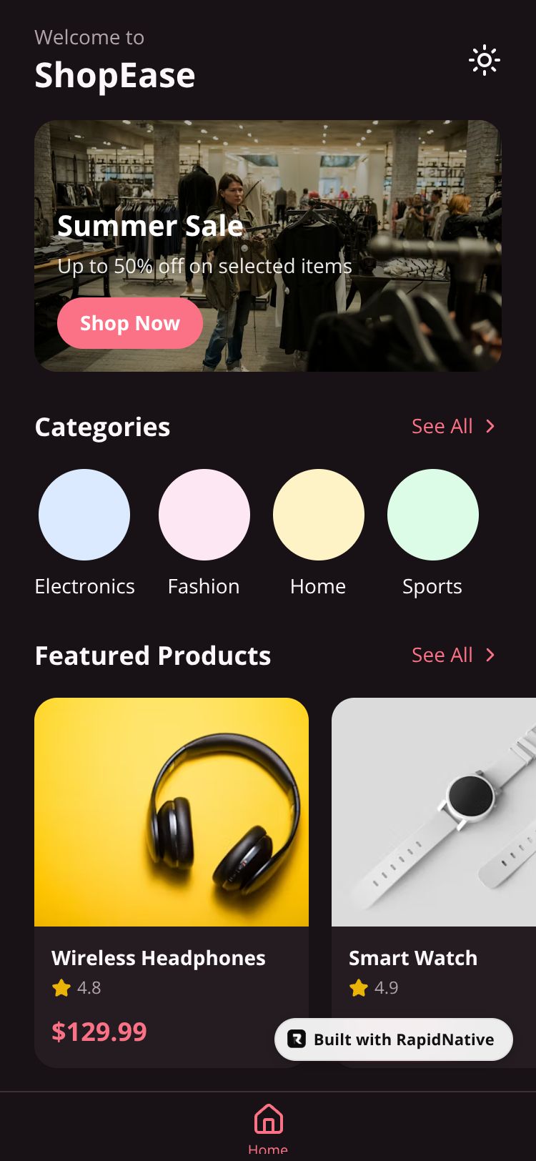 A modern e-commerce app for browsing products, managing your cart, and discovering new deals.