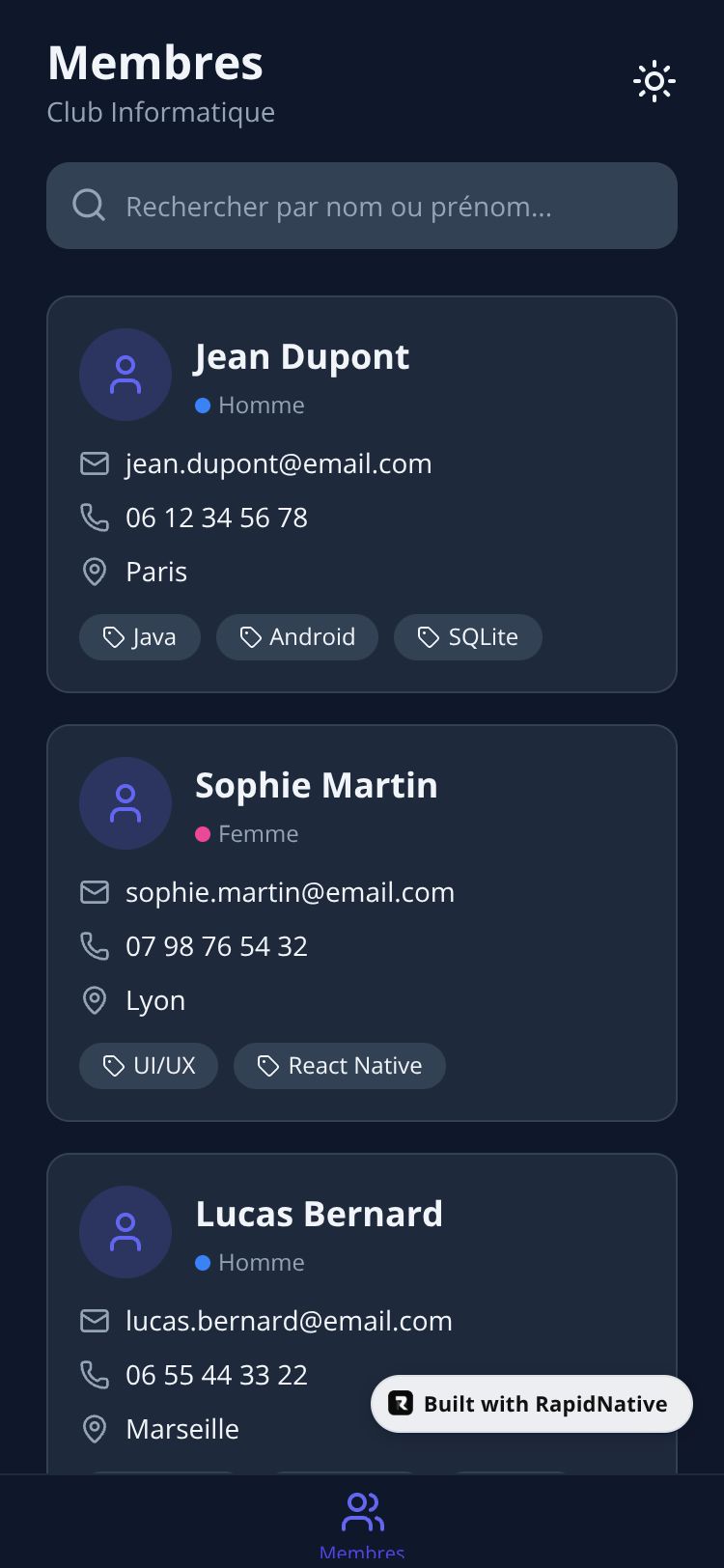 Application de gestion des membres d'un club informatique avec fonctionnalités CRUD. Permet d'ajouter, consulter et modifier les informations des membres.