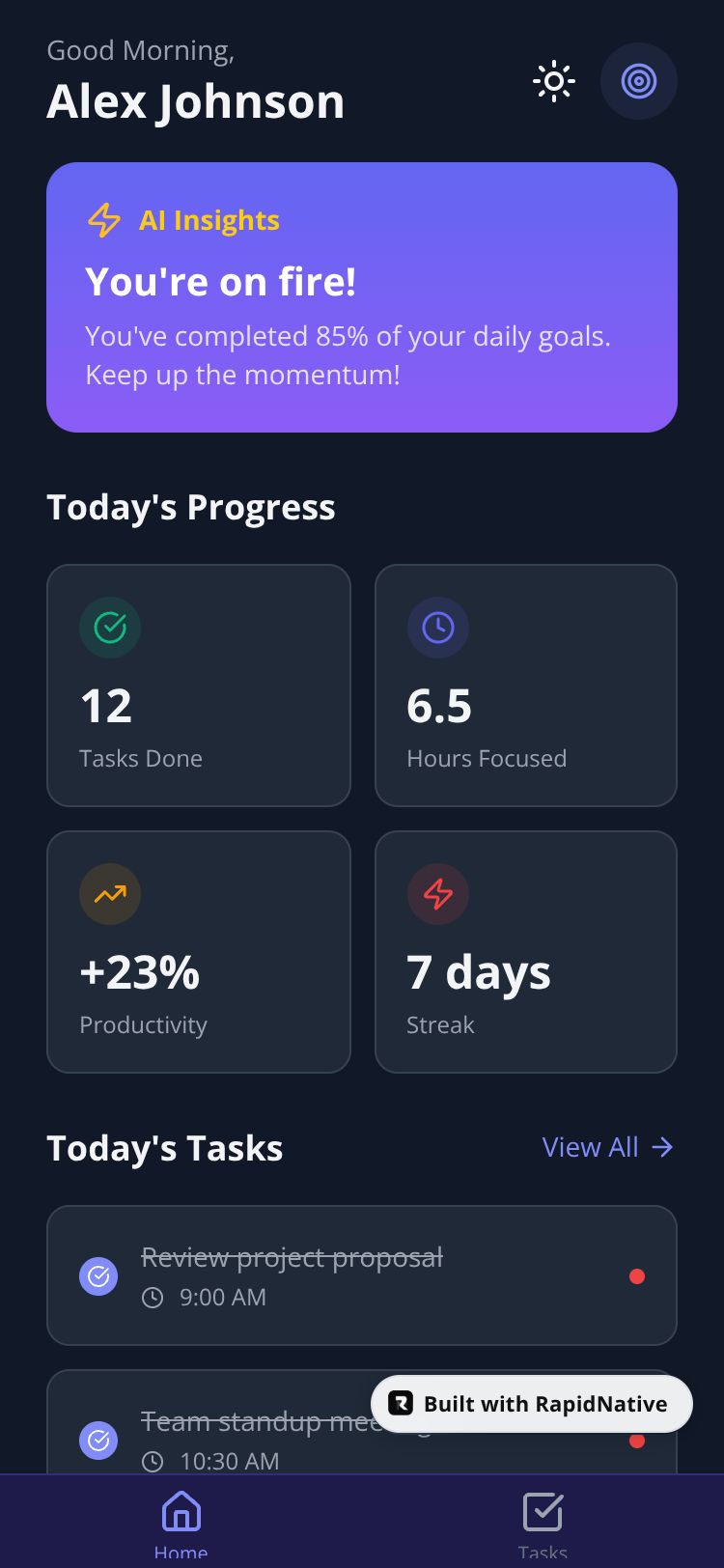 Browse this public project and clone it to start building your own React Native TaskFlow AI app.