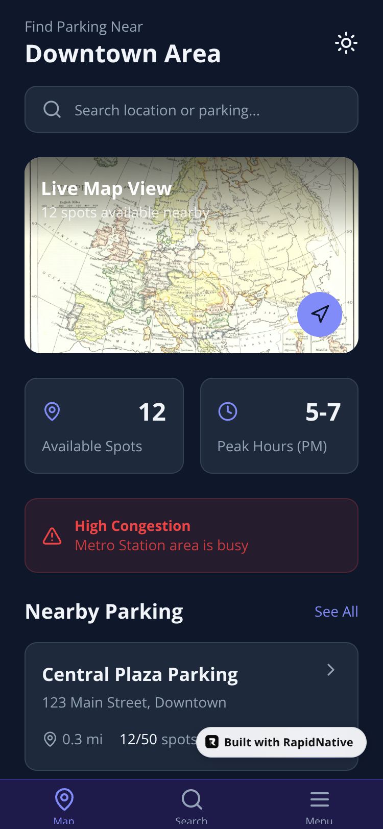 Find and reserve parking spaces easily in high-density areas with real-time availability, peak hour tracking, and congestion monitoring.