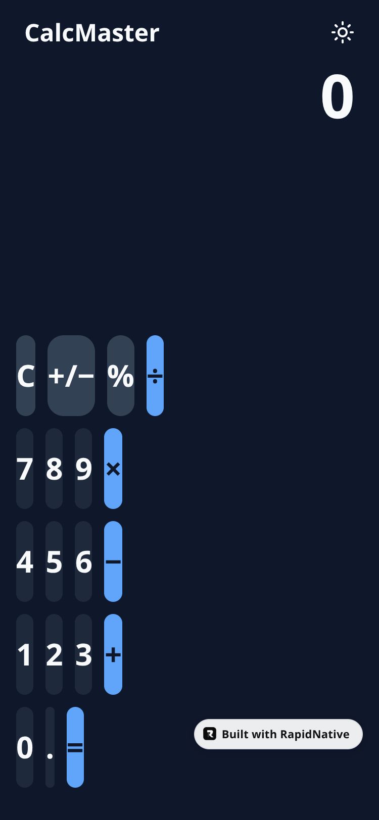 Browse this public project and clone it to start building your own React Native CalcMaster app.