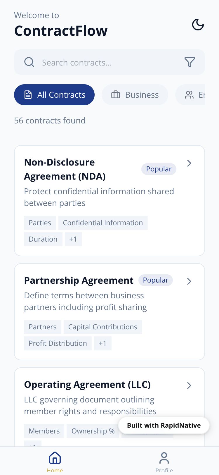 Browse this public project and clone it to start building your own React Native ContractFlow app.