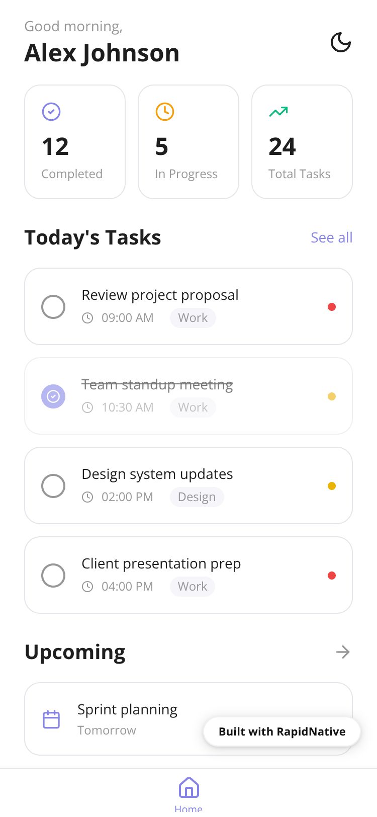 React Native TaskFlow App Preview