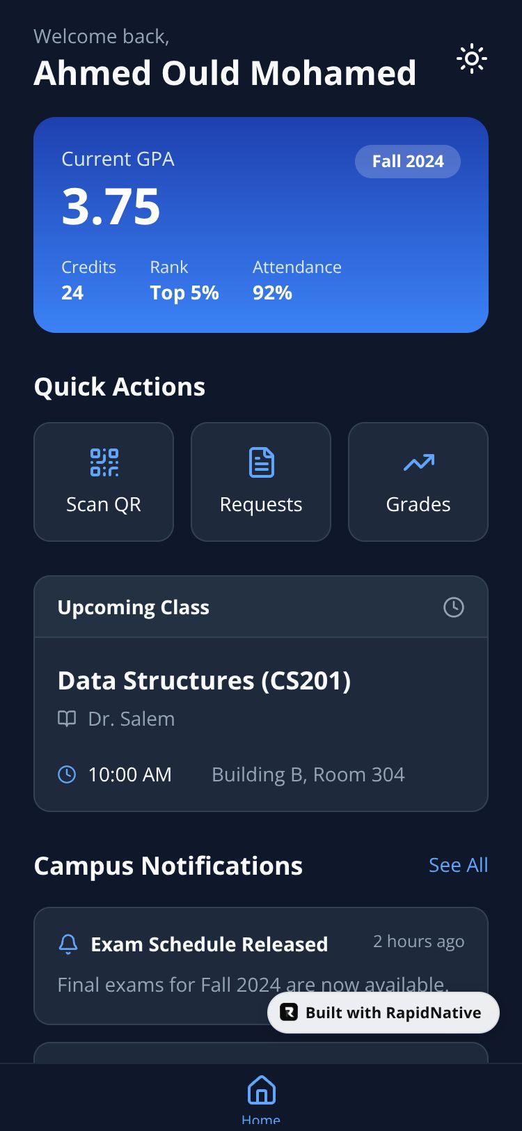 Browse this public project and clone it to start building your own React Native UNDB Smart Campus app.