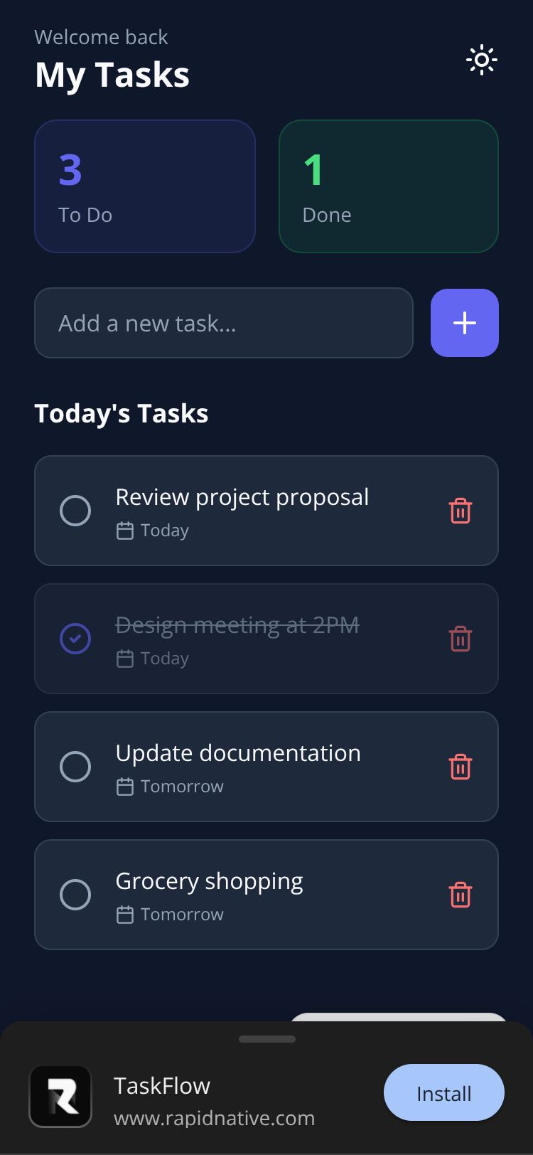 Browse this public project and clone it to start building your own React Native TaskFlow app.
