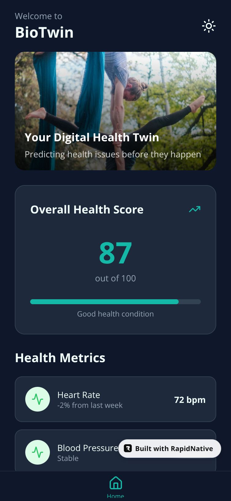 A virtual body twin app that predicts future health issues and provides personalized eating habit recommendations based on user data.