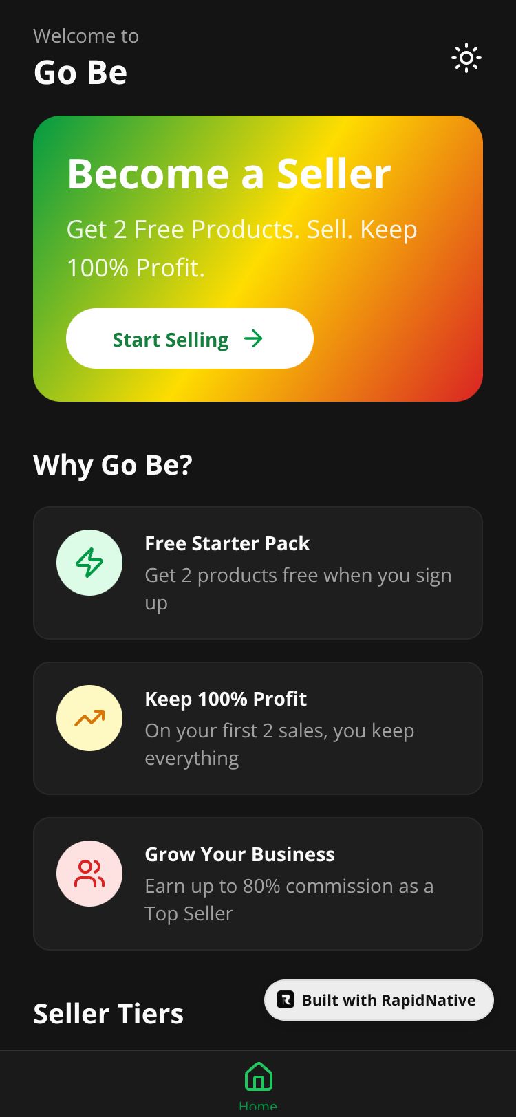 Browse this public project and clone it to start building your own React Native Go Be app.