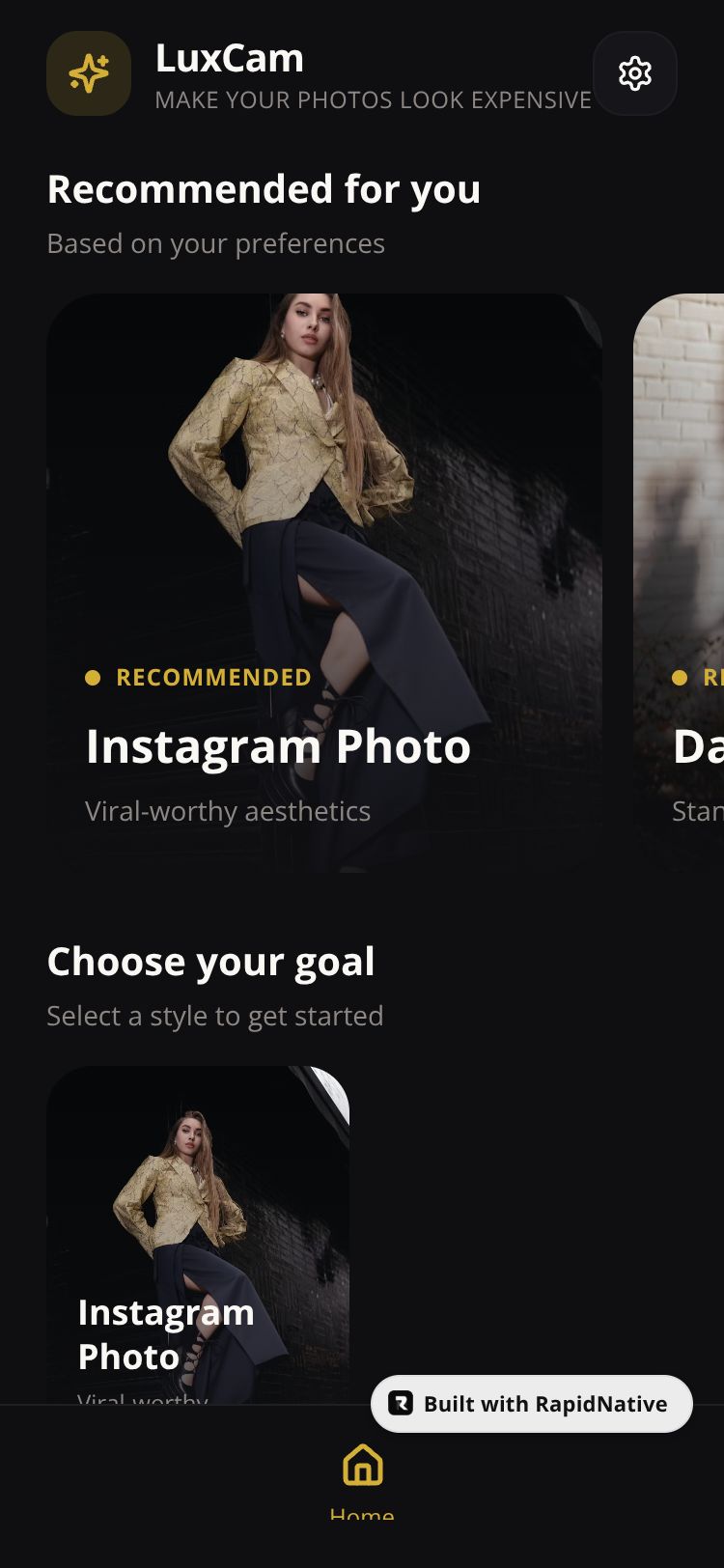 Browse this public project and clone it to start building your own React Native LuxCam app.