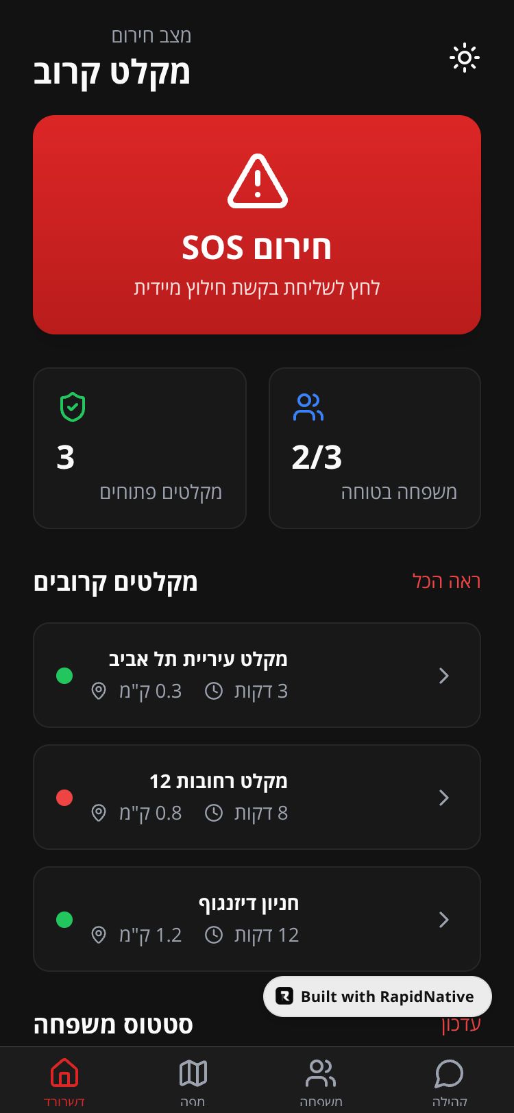 אפליקציית חירום למציאת מקלטים, ניווט מהיר ותיאום משפחתי בזמן אמת.