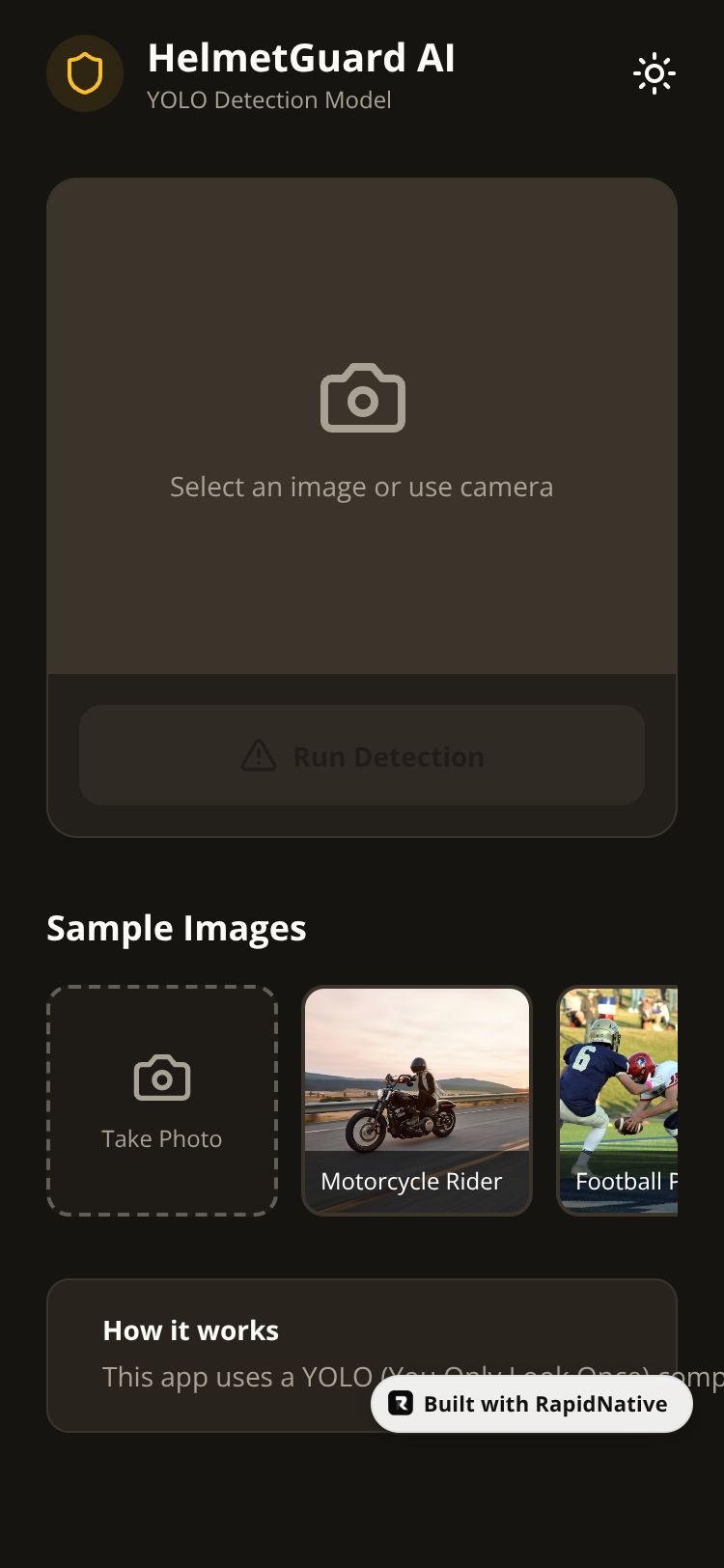 React Native HelmetGuard AI App Preview